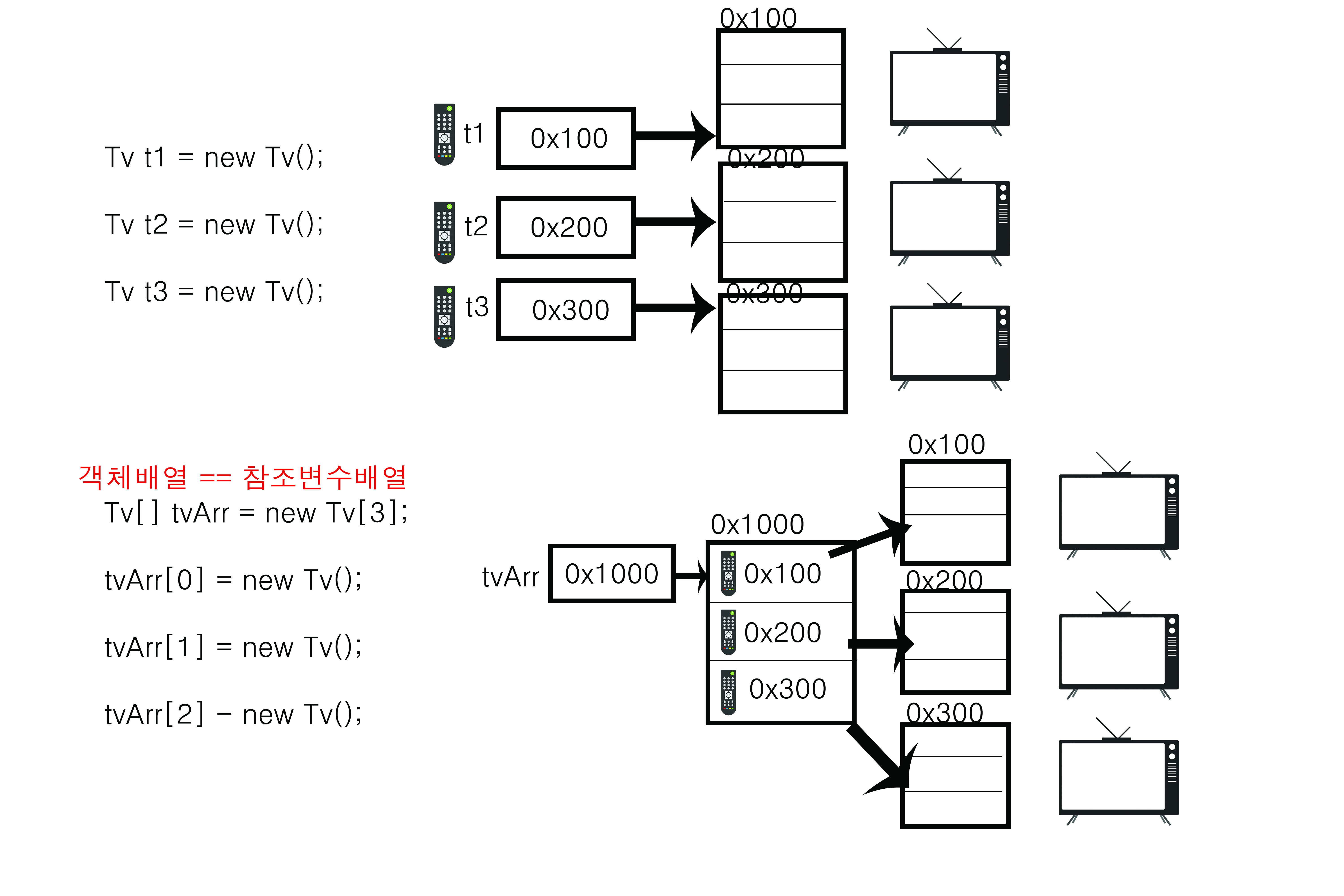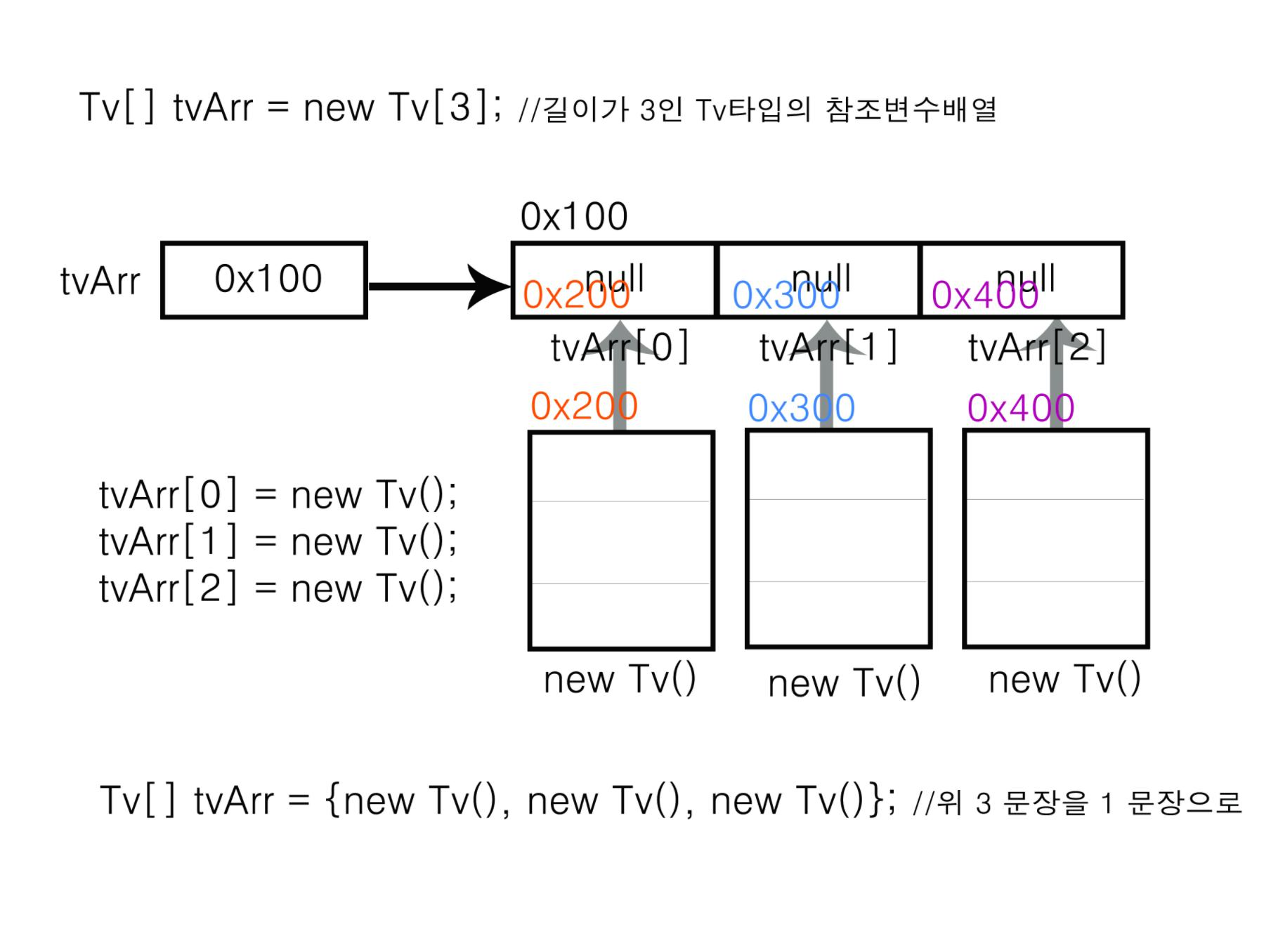 tvArr[0] = new Tv(); //배열 첫 번째에 첫 번째 티브이 객체 생성