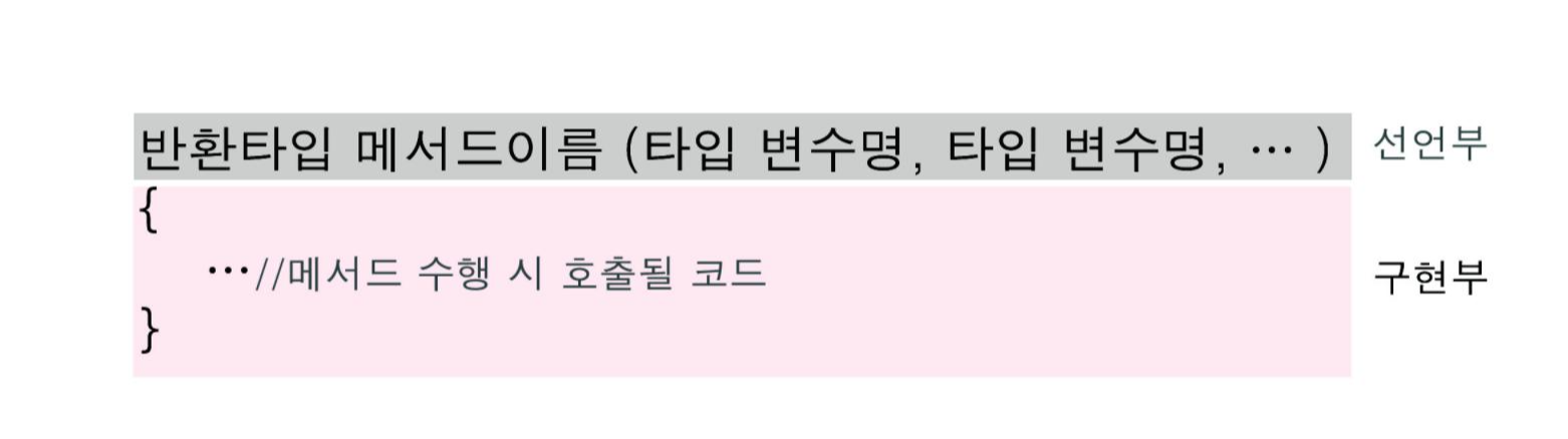 메서드 호출 시 수행될 코드는 '구현부'라 합니다.
