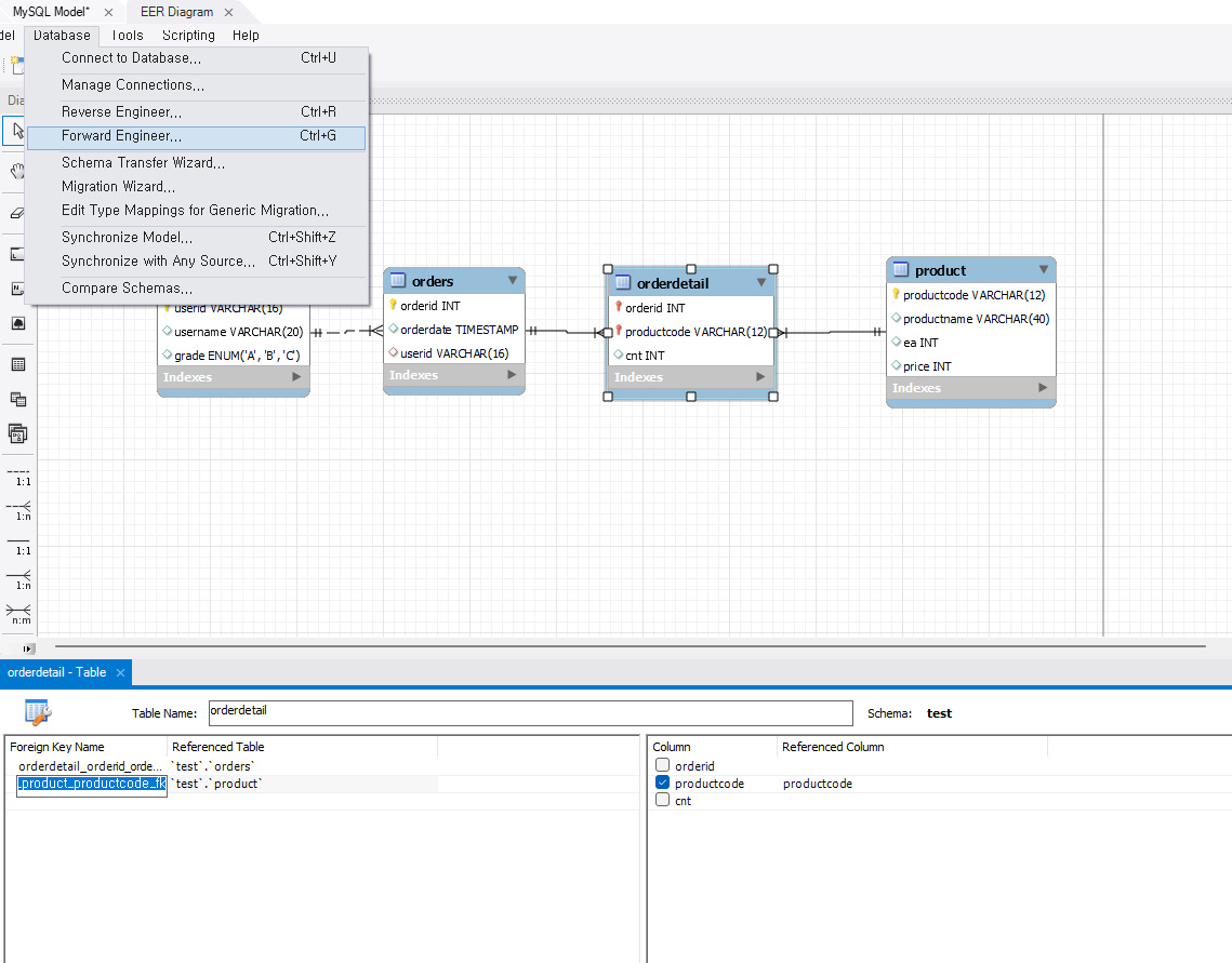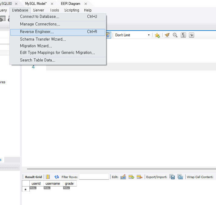 - reverse는 테이블을 ER 다이어그램으로