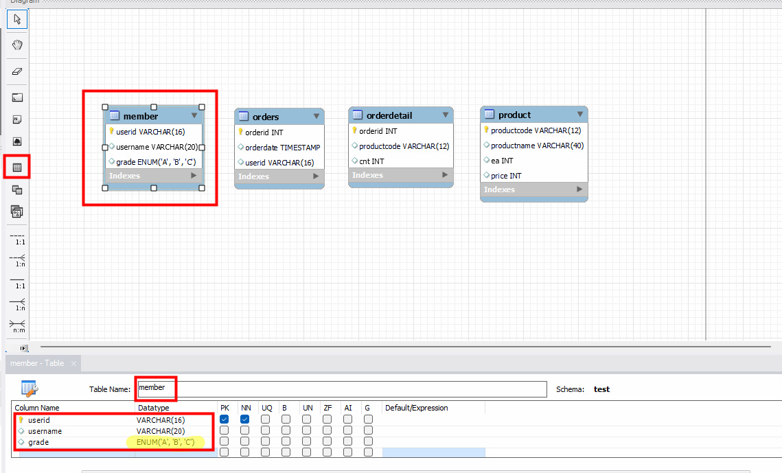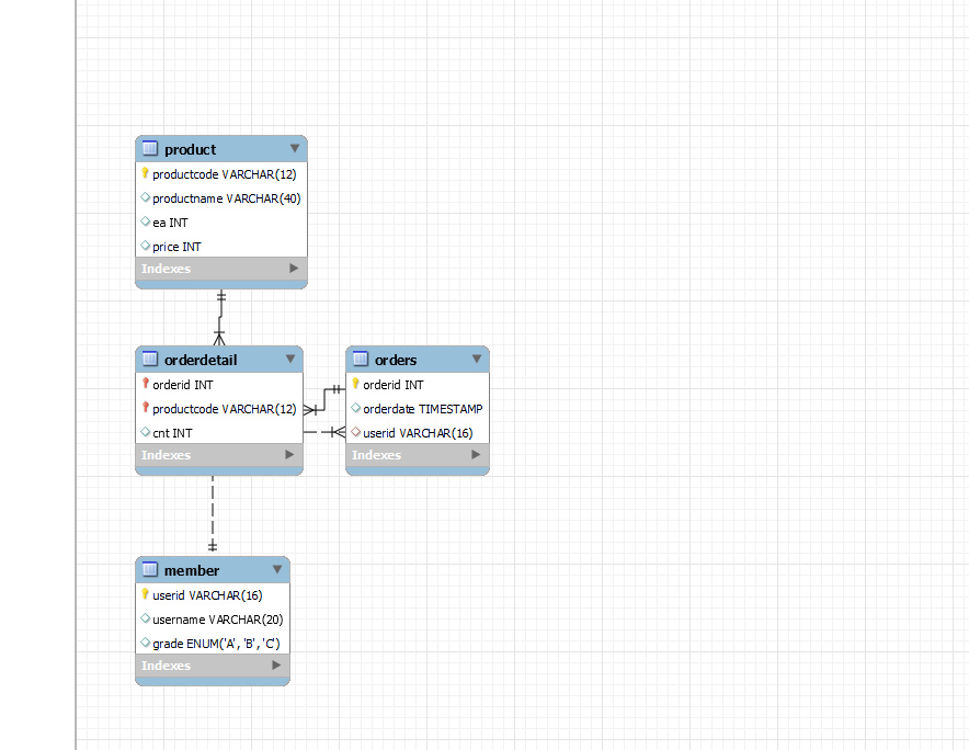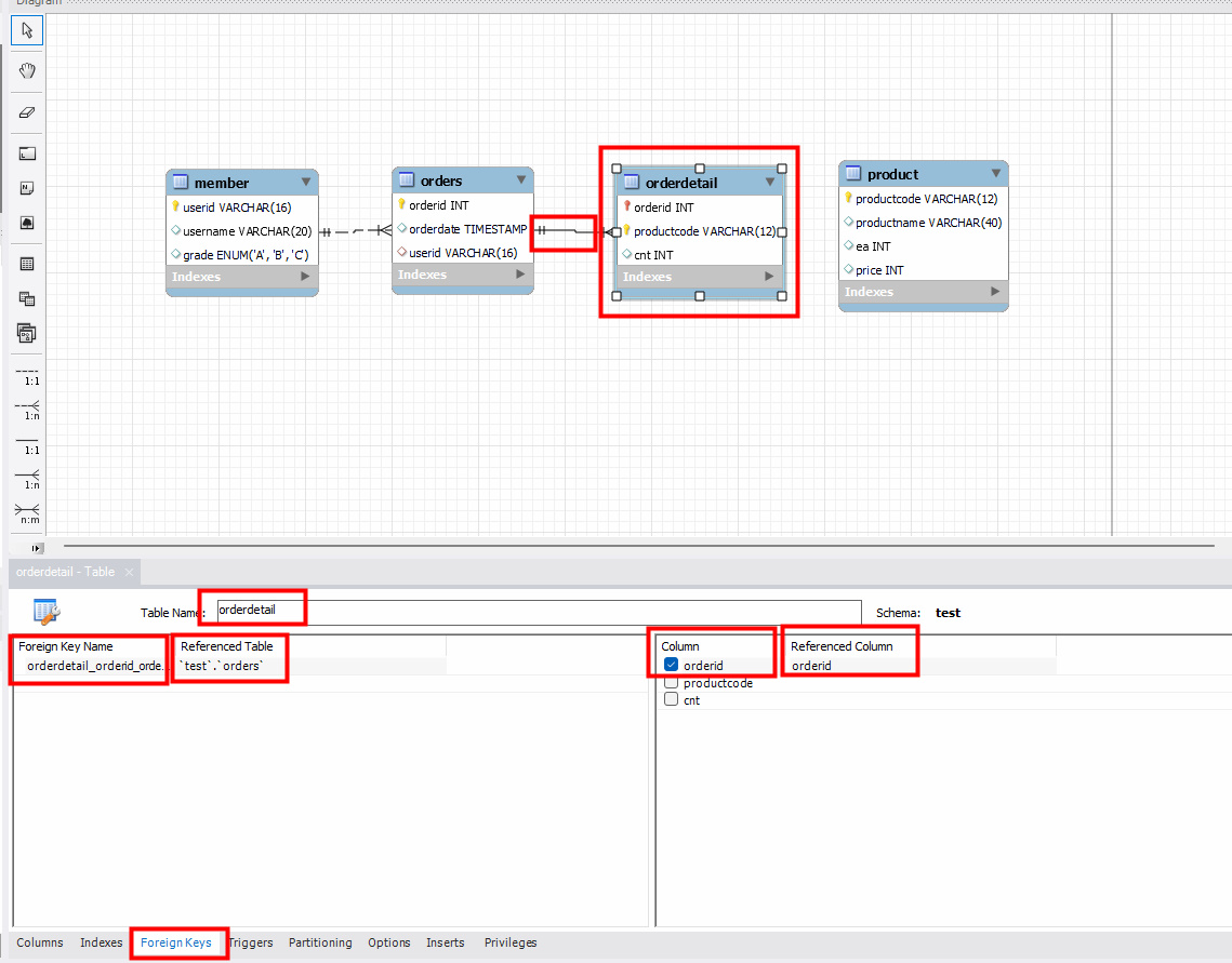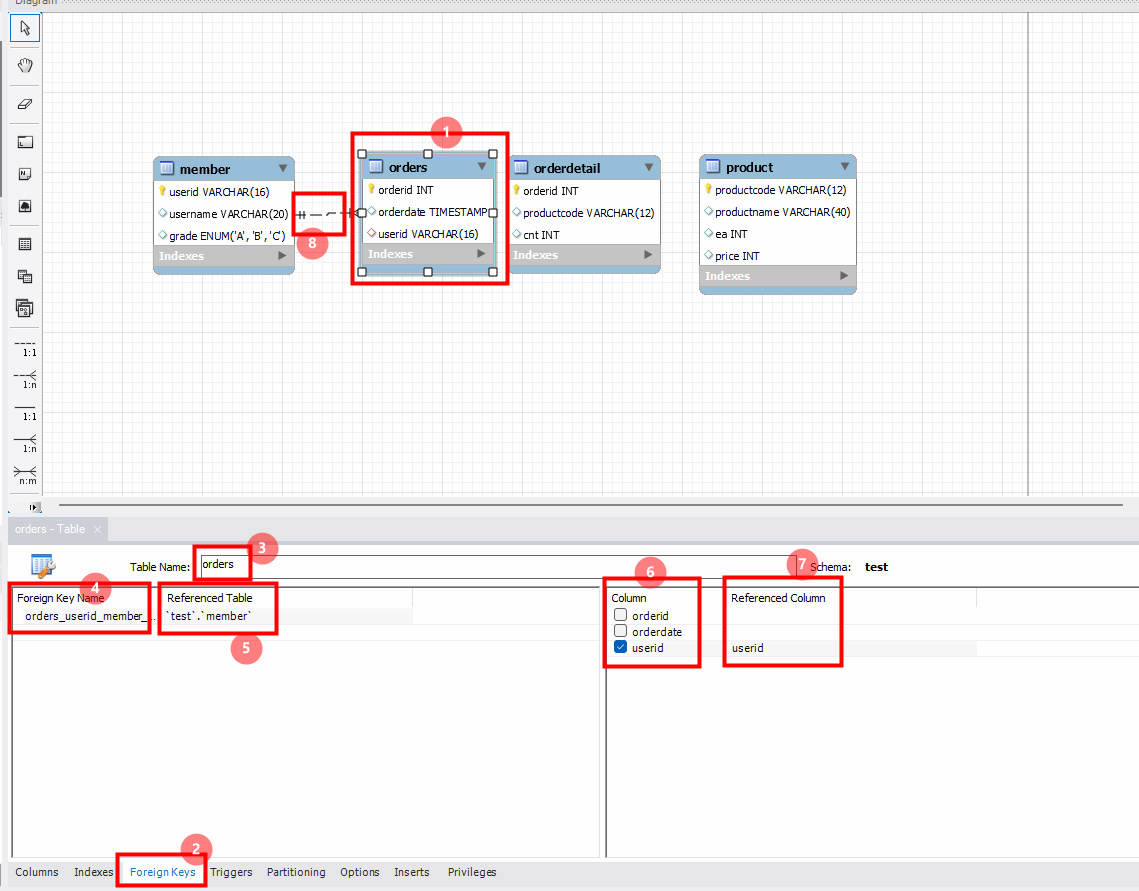 orders에 있는 userid는 member에 있는 userid를 참조하는 외래 키이다. 외래키 설정해보자.