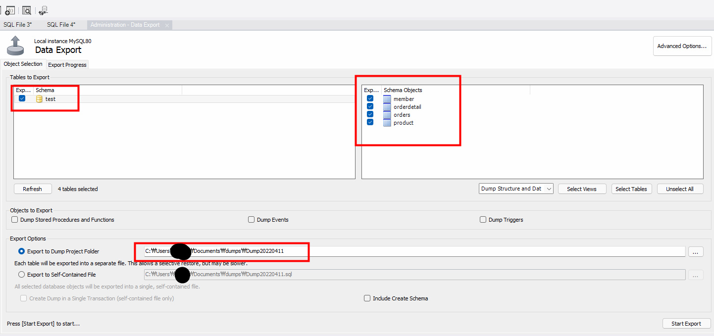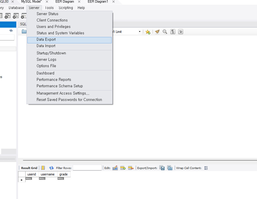 - DATA EXPORT(덤프 파일: 내가 만들었던 파일을 server-expert(덤프 폴더 기억하기))