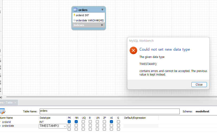 - orderdate에서 timestamp 괄호 빼주기!