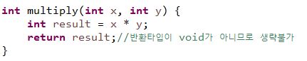 return문을 생략해버리면 result의 반환 타입이 어떤것인지 모르기때문에 반환타입이 있는 경우 return문을 꼭 써줘야 합니다.