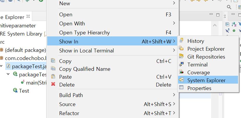 -소스파일 이름 우클릭-show in-system explorer(탐색기)