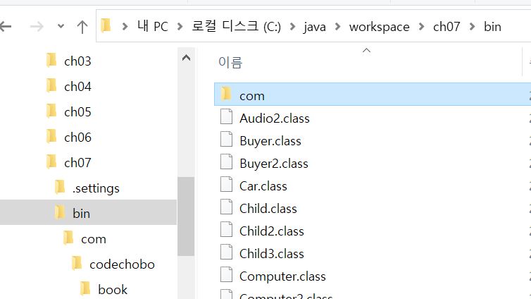 'cd C:\java\workspace\ch07\bin'를 입력한다.