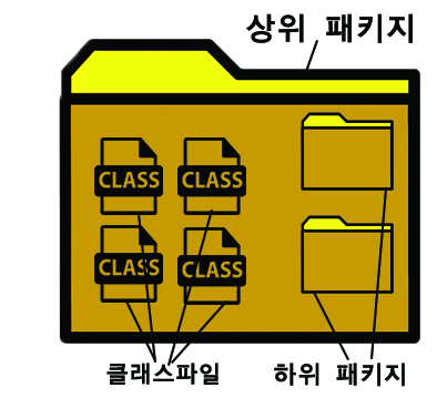 -클래스는 클래스 파일(. class), 패키지는 폴더, 하위 패키지는 하위 폴더